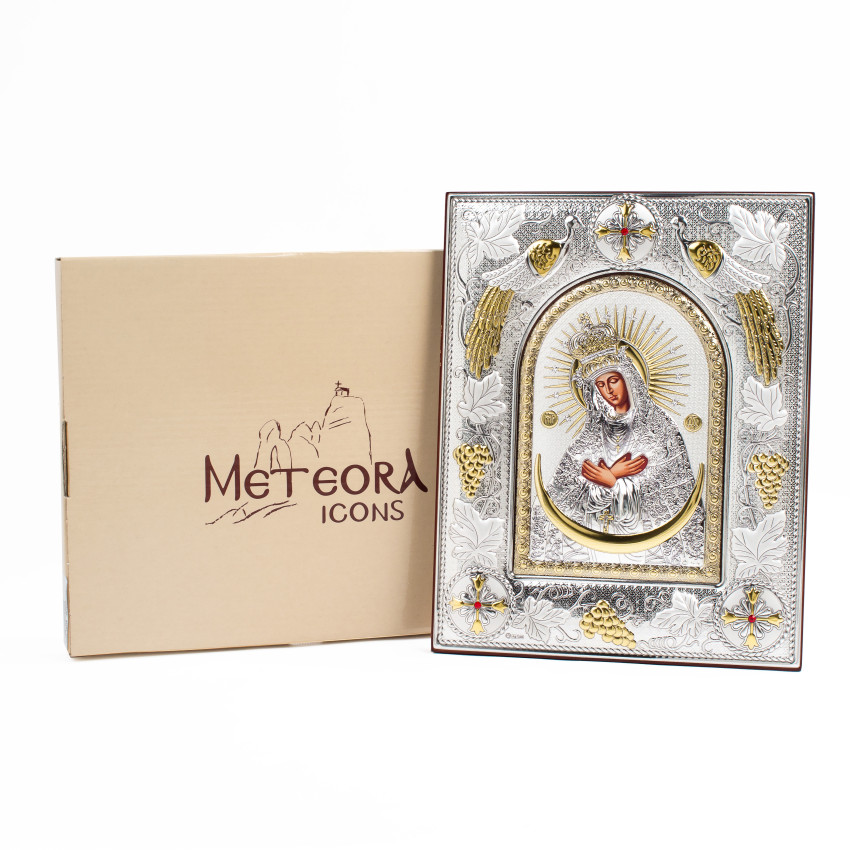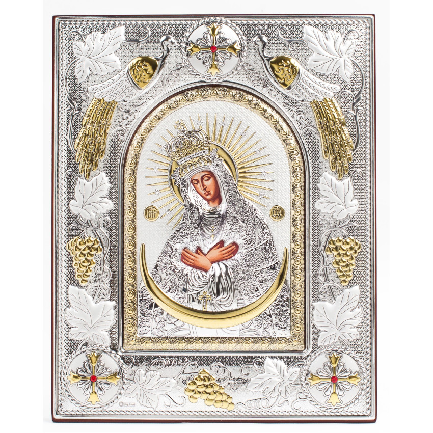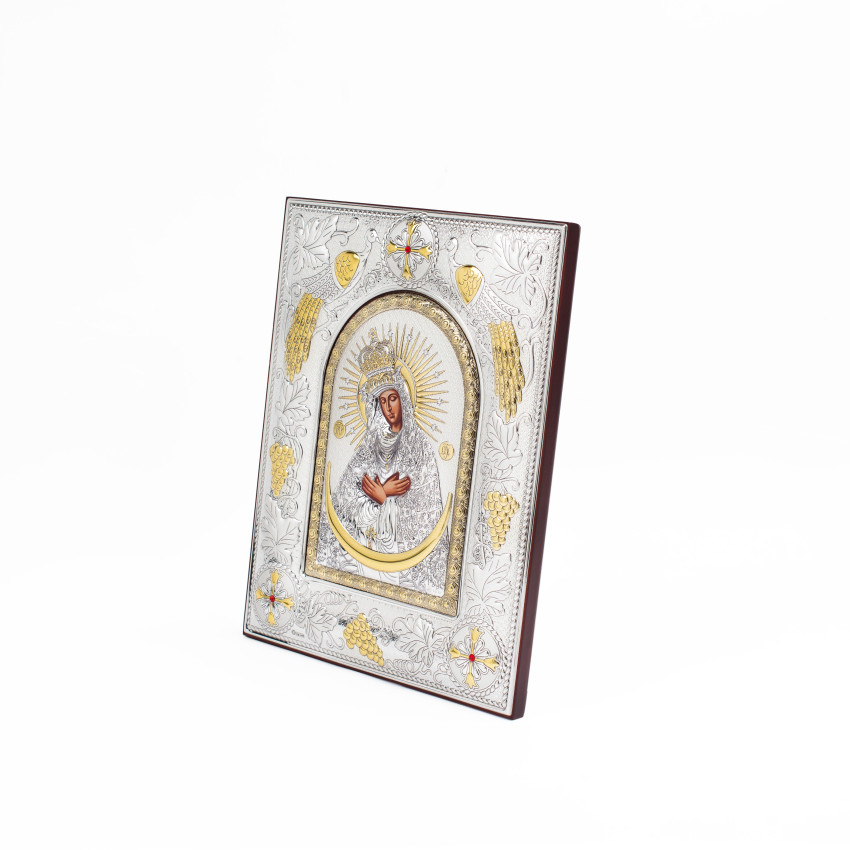 Остробрамська Ікона Божої Матері 20x25см в срібній прямокутній рамці з позолотою