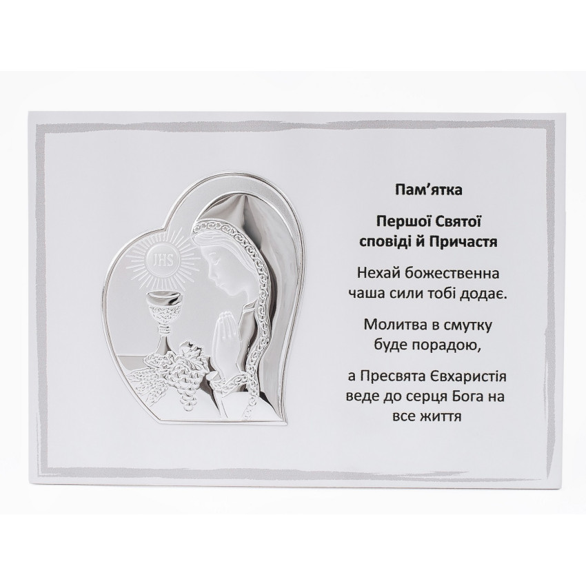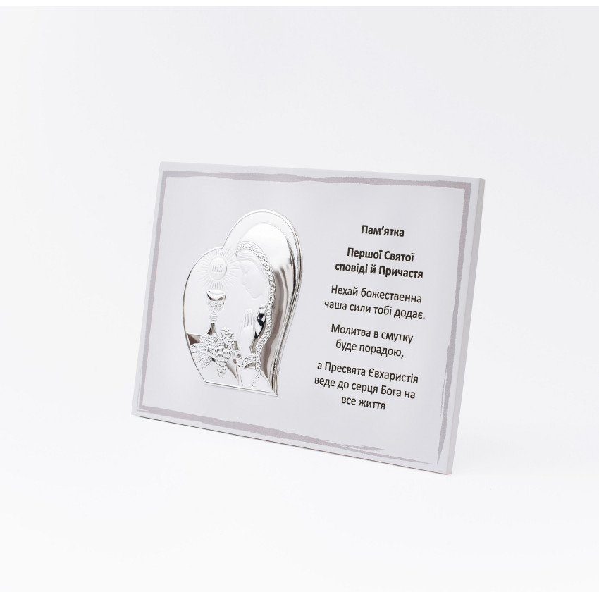 Срібна Пам'ятка Першого Причастя 13х18см для дівчинки