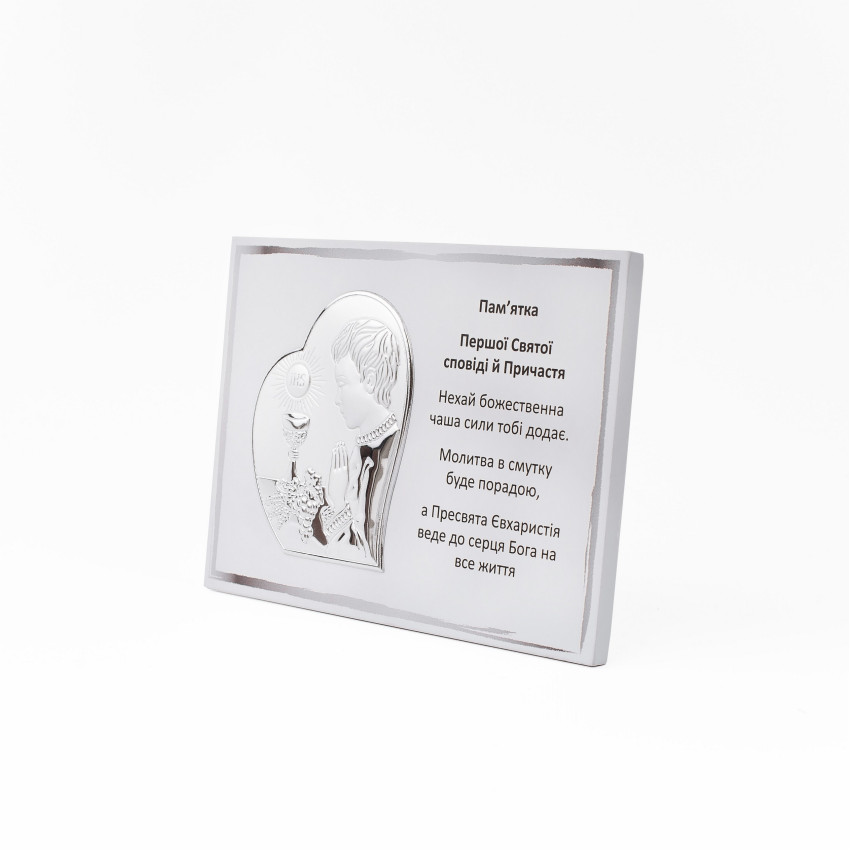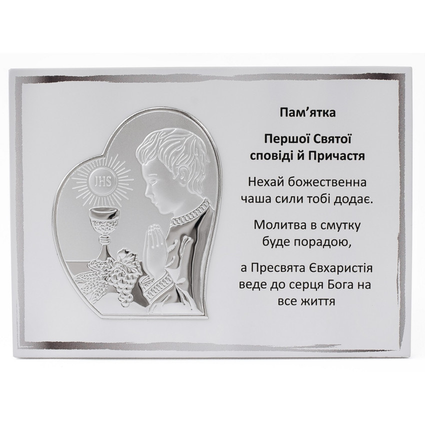 Срібна Пам'ятка Першого Причастя 13х18см для хлопчика