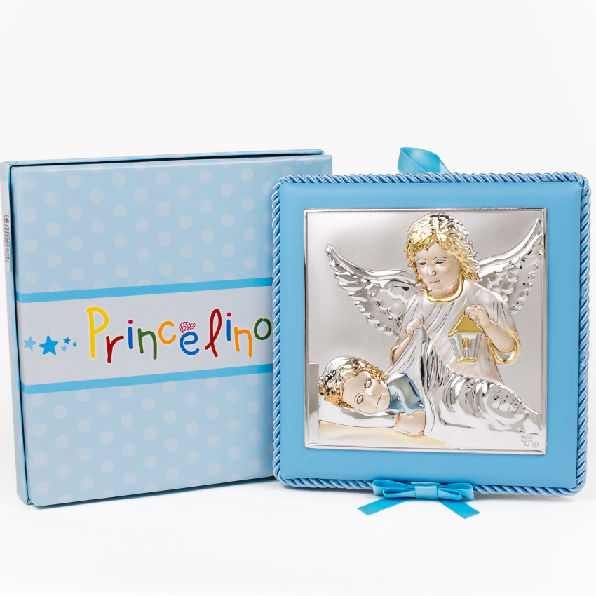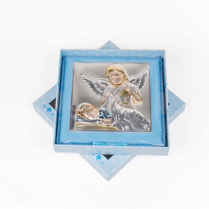 Подарункова Іконка Ангела Хранителя 14х14см на синій подушечці з музикою