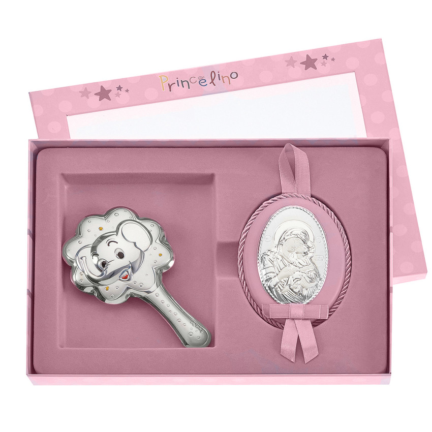 Подарунковий набір дівчинці 18х24см Брязкальце та Іконка на подушечці MB/S085-1R
