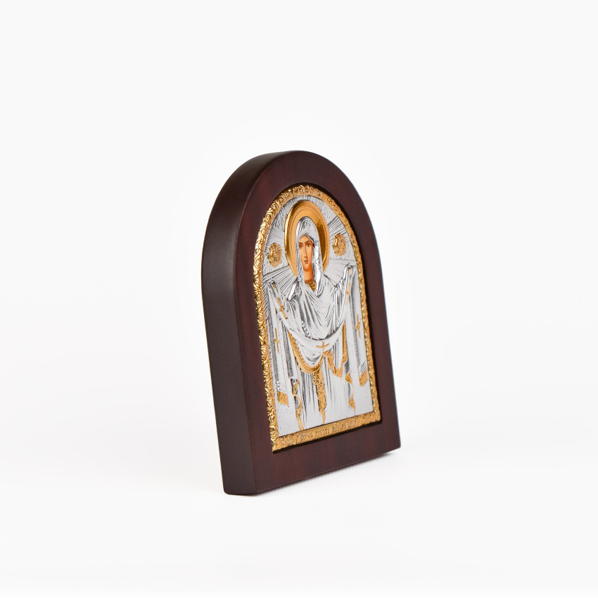 Ікона Покрови Пресвятої Богородиці 20х25см арочної форми на дереві з рамкою EP5-192XAG/P