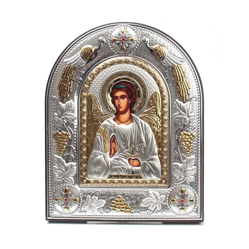Серебряная Икона Святой Ангел Хранитель арочной формы на дереве