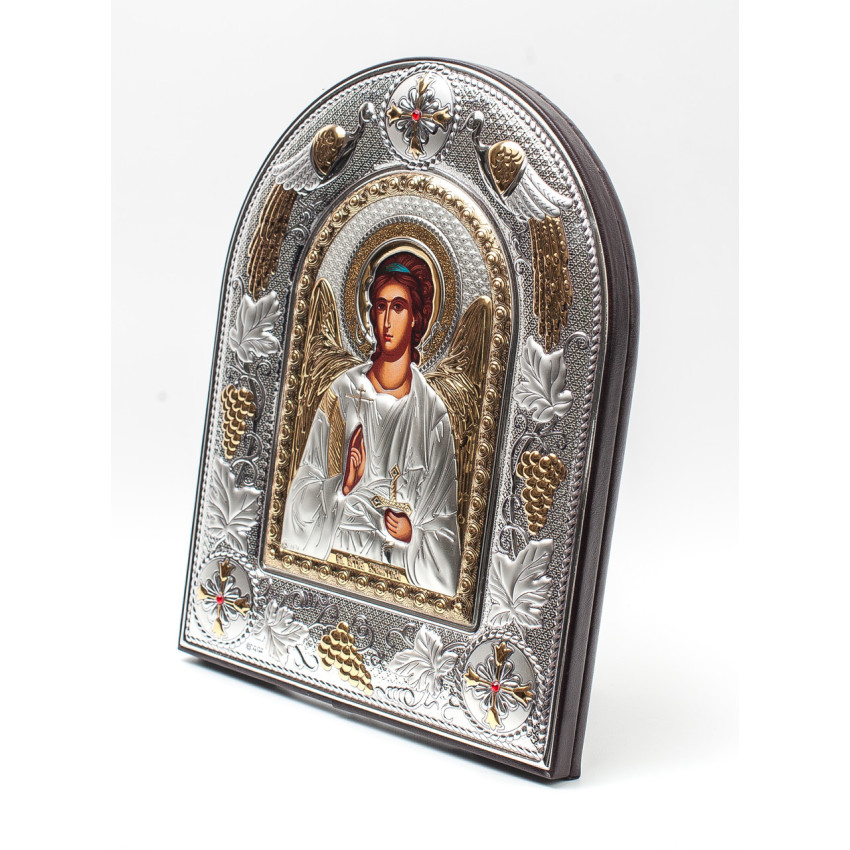 Ангел Хранитель 20х25см Греческая серебряная икона в кожаной оправе