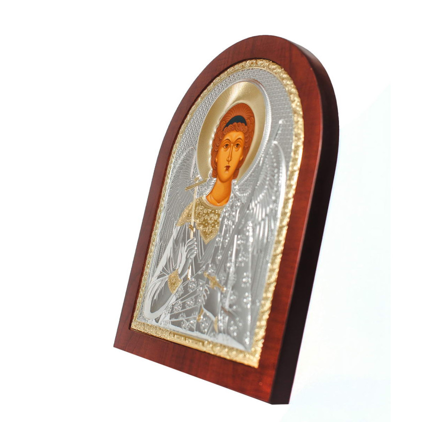 Серебряная Икона Ангела Хранителя 8,1х9,7см арочной формы на дереве с рамкой EP2-172XAG/P