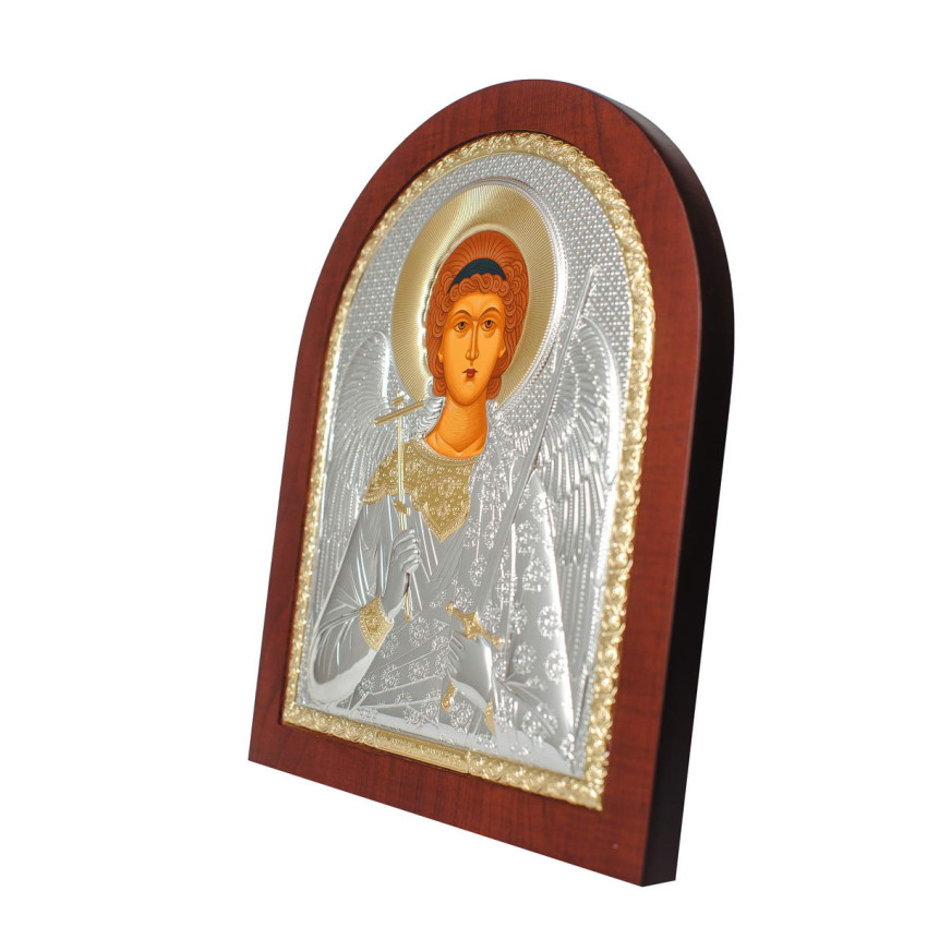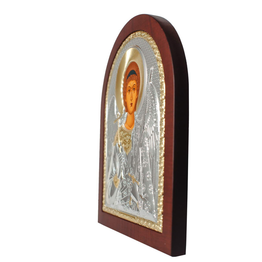 Серебряная Икона Святой Ангел Хранитель арочной формы на дереве