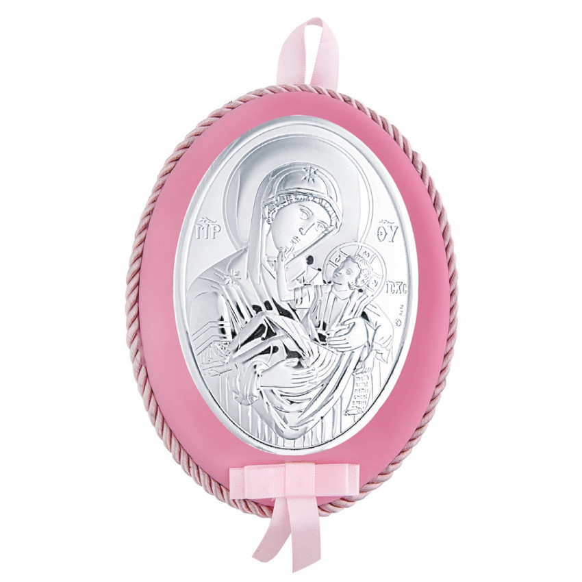 Божья Матерь Отрады и Утишения икона для девочки 12x15,5см MA/DM651-LR на розовой подушечке с музыкой для девочки