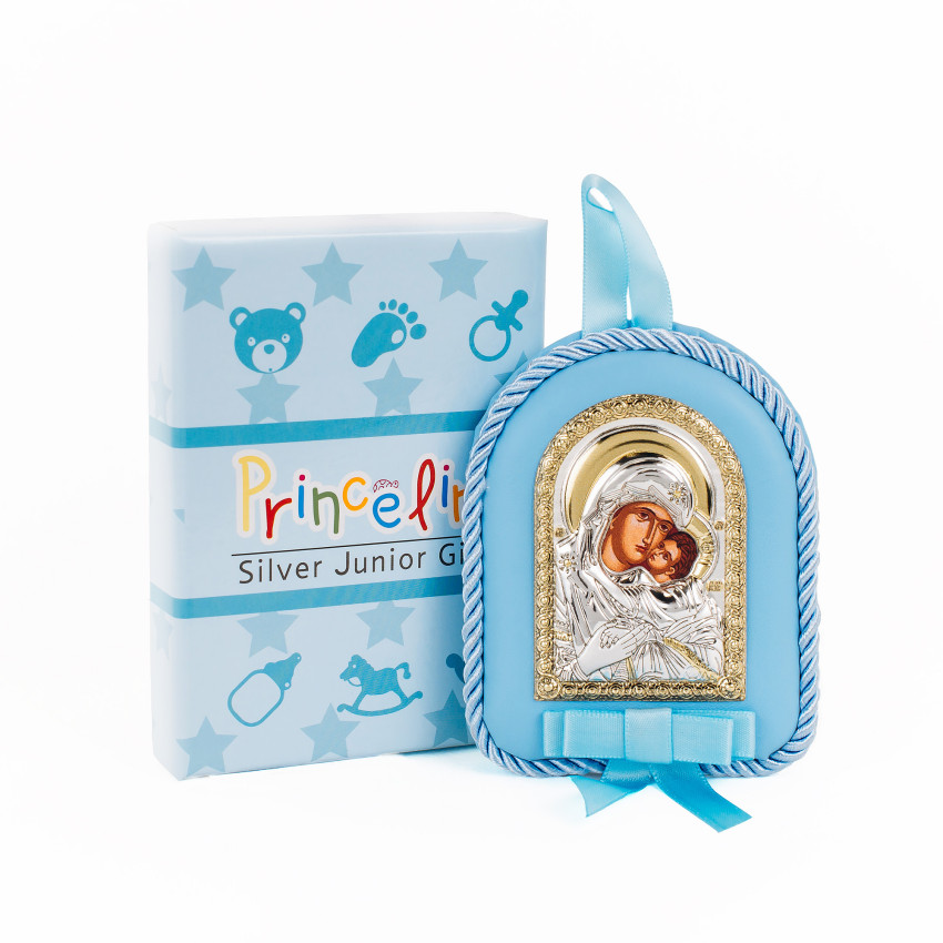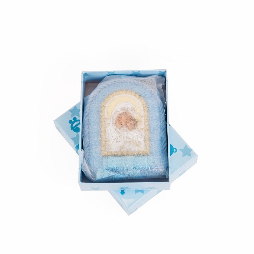 Детская икона Богородица Умиления 7x9см MA/D1104O-C на синий подушечке для мальчика