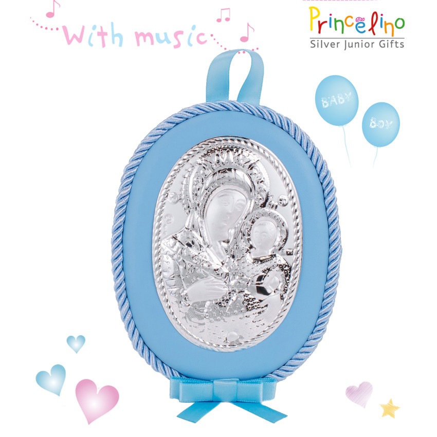 Детская икона Вифлеемская Богородица 10х12,5см MA/DM603-LC на синий подушечке с музыкой для мальчика
