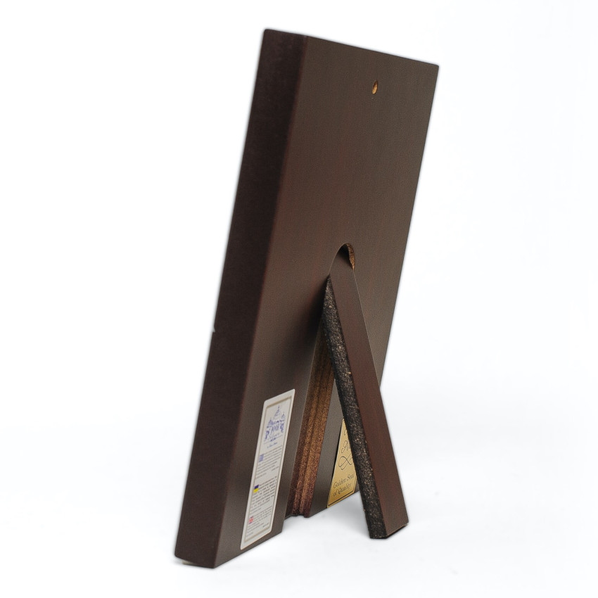 Икона имеет откидную подставку и отверстие для удобного вертикального размещения на стене. Данное изделие чудесно будет смотреться в интерьере спальной комнаты, кухни, гостиной или детской.