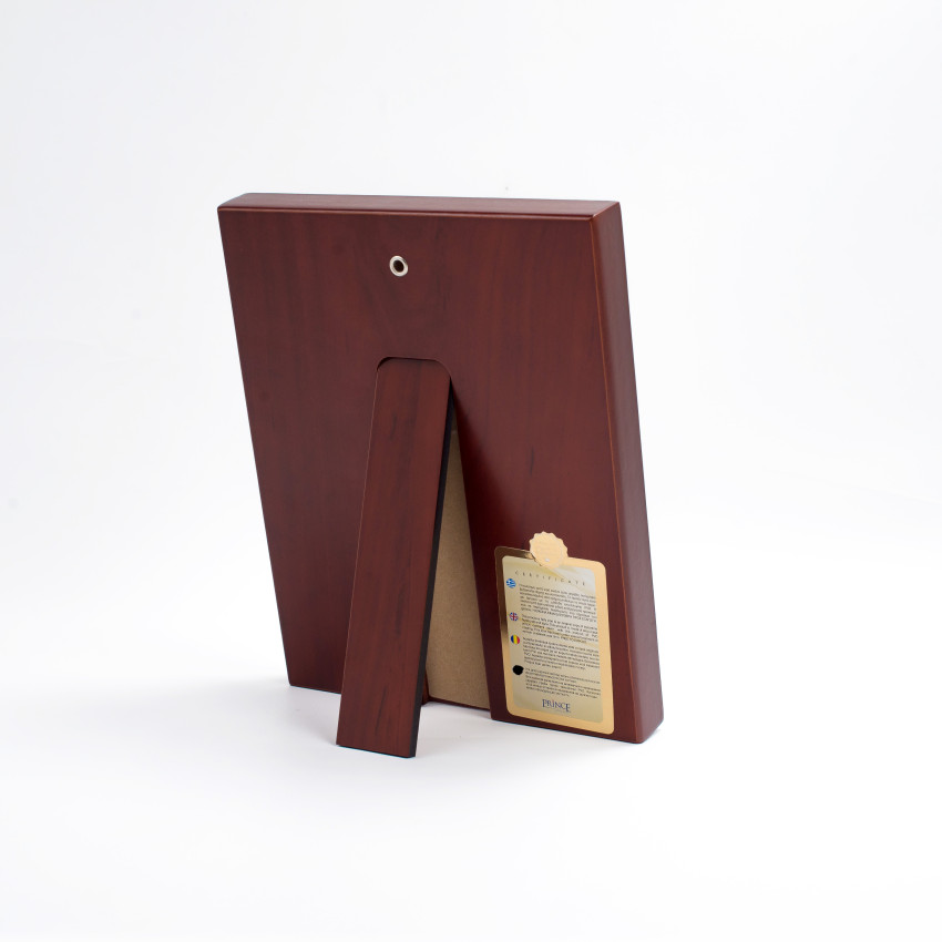 Закреплен оклад на деревянном киоте (основе) прямоугольной формы, изготовленной из МДФ покрытого шпоном дерева. Сзади икона есть откидная ножка и отверстие для крепления на стене.