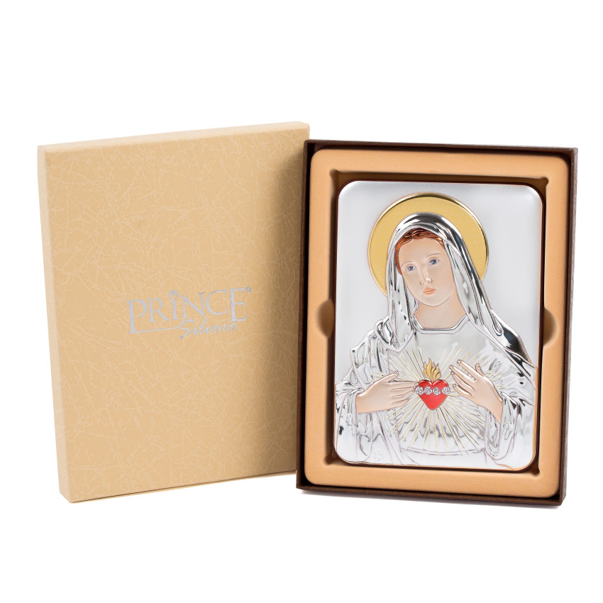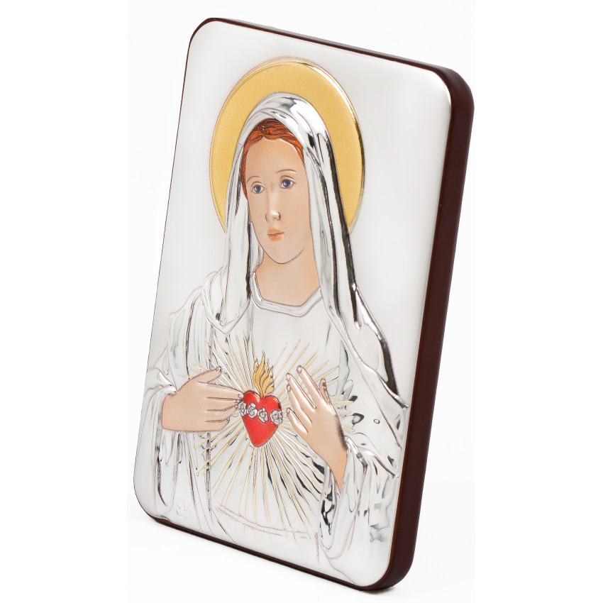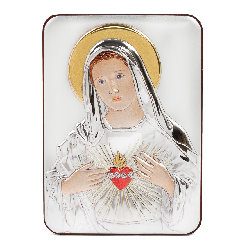 Непорочное Сердце Пресвятой Девы 15X21см серебряная итальянская икона MB/E981/2-C