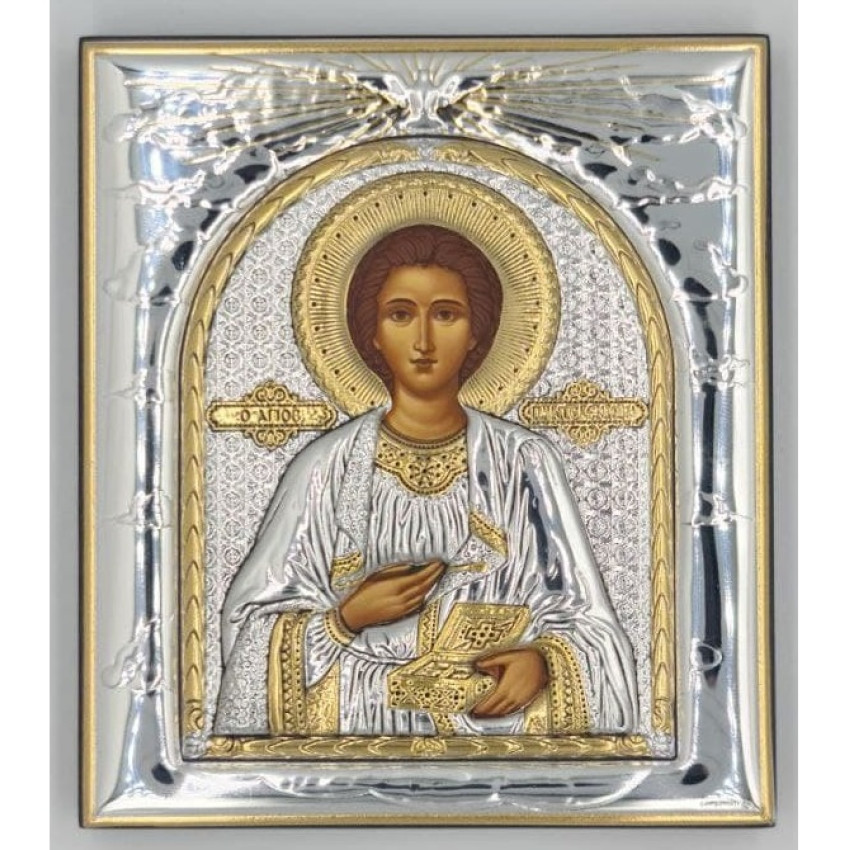 Икона Пантелеймона Целителя 11,3х13см прямоугольной формы на дереве без рамки EP443-023XG/P