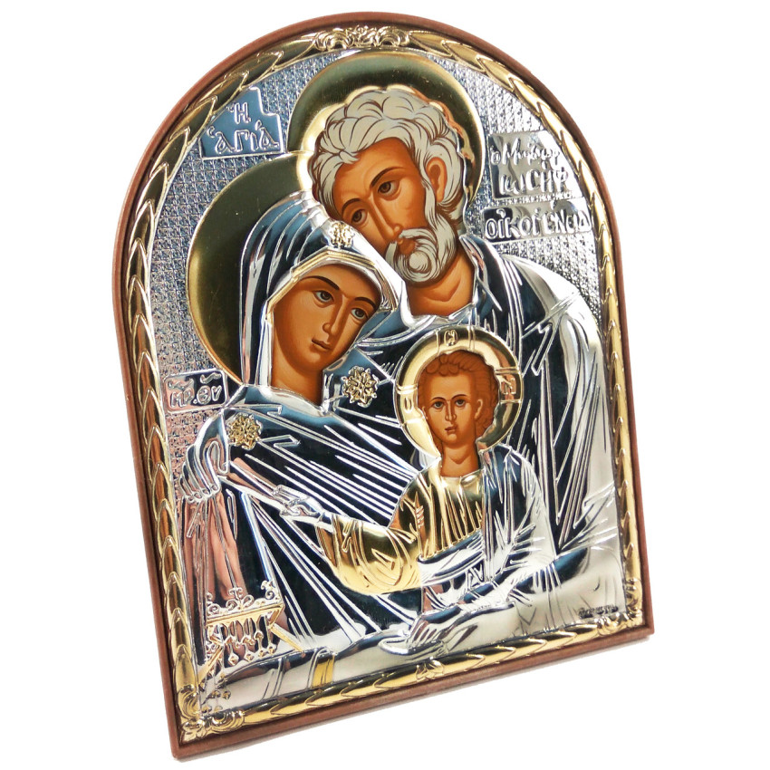 Серебряная икона Святая Семья в прямоугольной форме с позолотой 15х21см