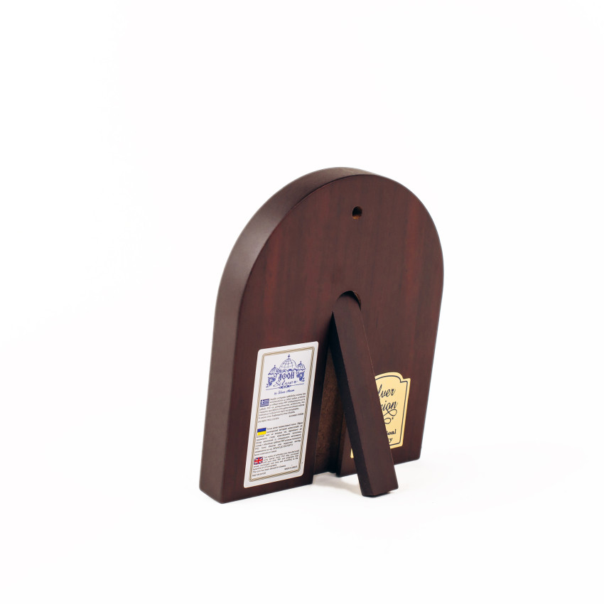 Икона имеет откидную подставку и отверстие для удобного вертикального размещения на стене. Данное изделие чудесно будет смотреться в интерьере спальной комнаты, кухни, гостиной или детской.
