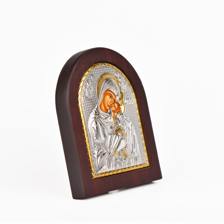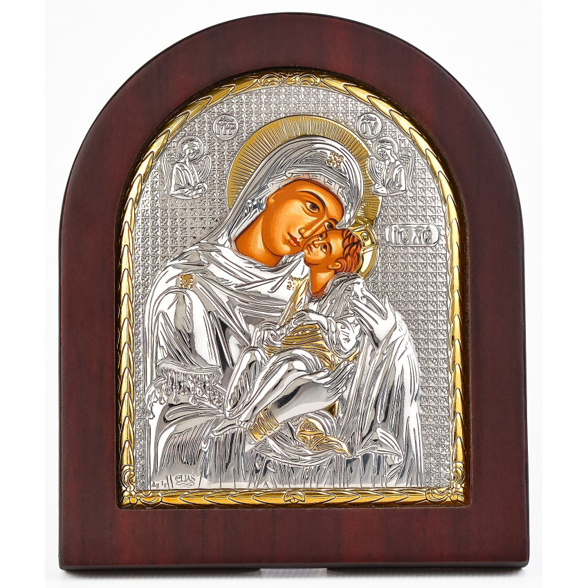 Икона Сладкое Лобзание Божией Матери 11х13см в серебряном окладе с позолотой EK3-002XAG