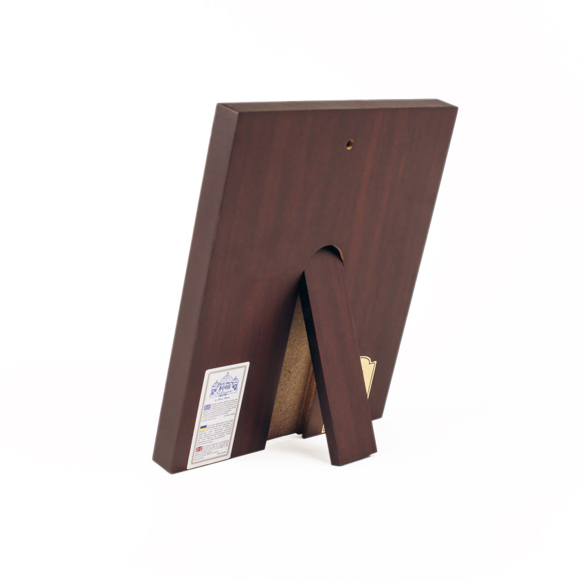 Икона имеет откидную подставку и отверстие для удобного вертикального размещения на стене. Данное изделие чудесно будет смотреться в интерьере спальной комнаты, кухни, гостиной или детской.