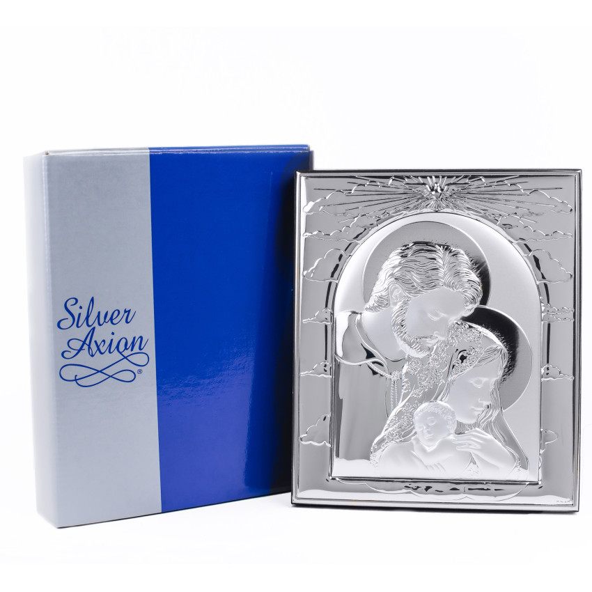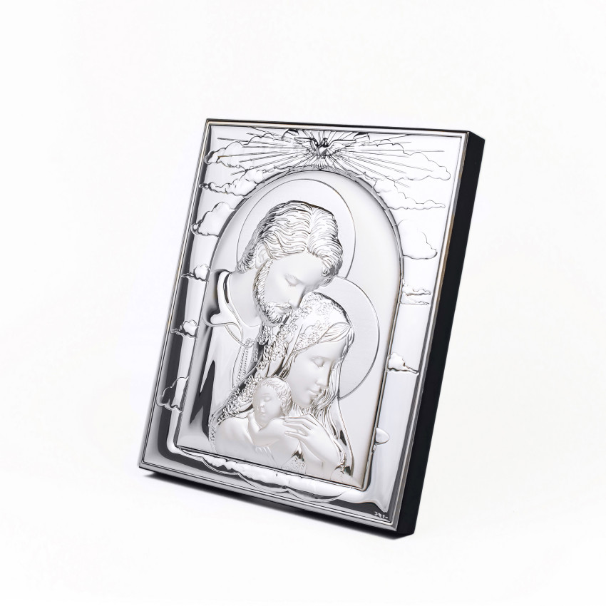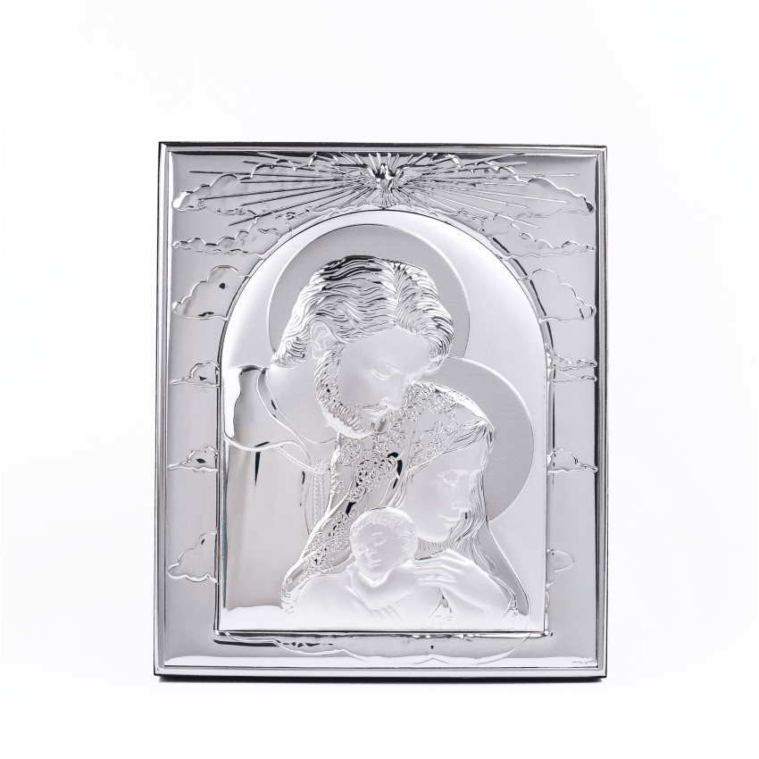 Икона Святое Семейство 11,3х19,1см серебряная прямоугольной формы на дереве без рамки EP444-188XG/S