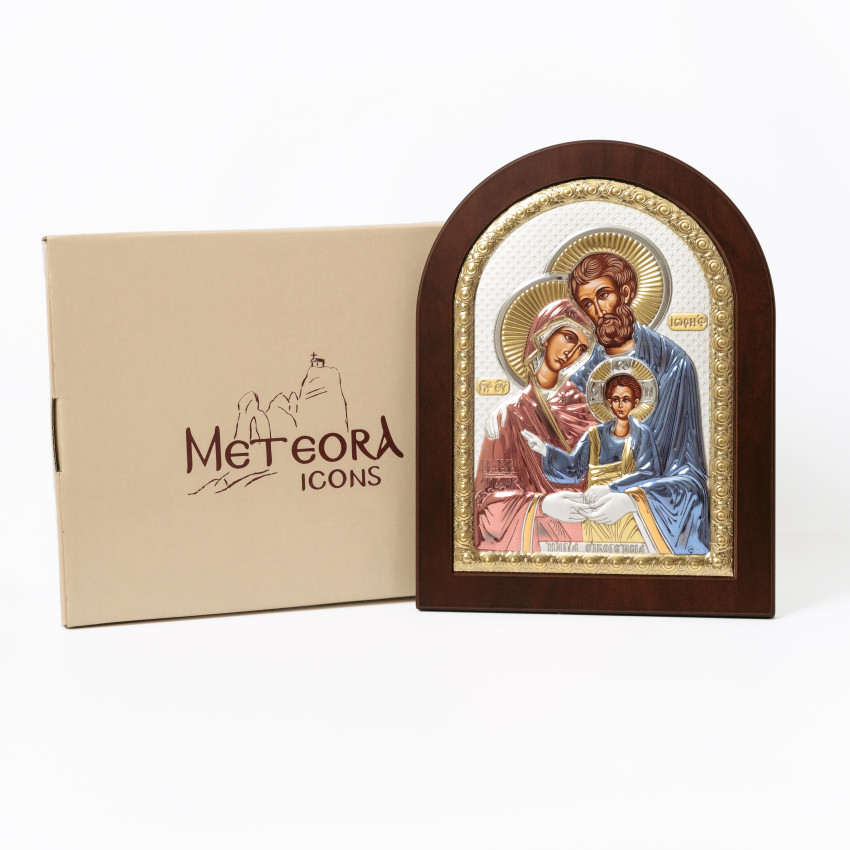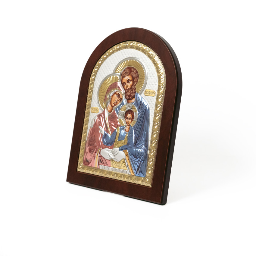 Икона Святое Семейство 15x21см в разноцветной эмали арочной формы на дереве