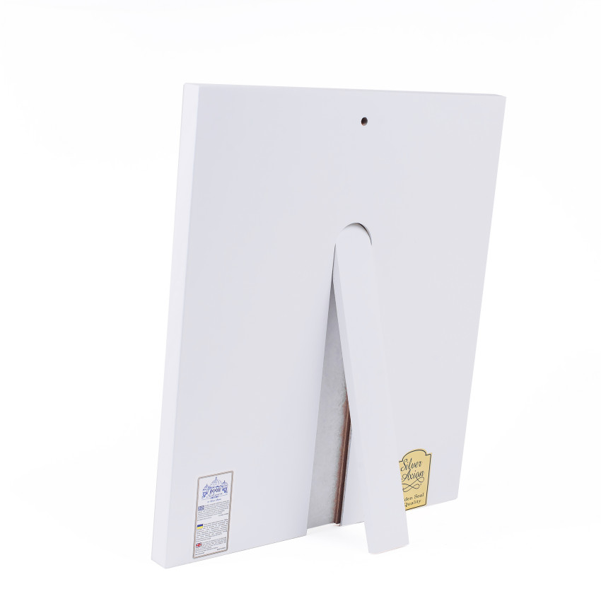 Икона имеет откидную подставку и отверстие для удобного вертикального размещения на стене. Данное изделие чудесно будет смотреться в интерьере спальной комнаты, кухни, гостиной или детской.