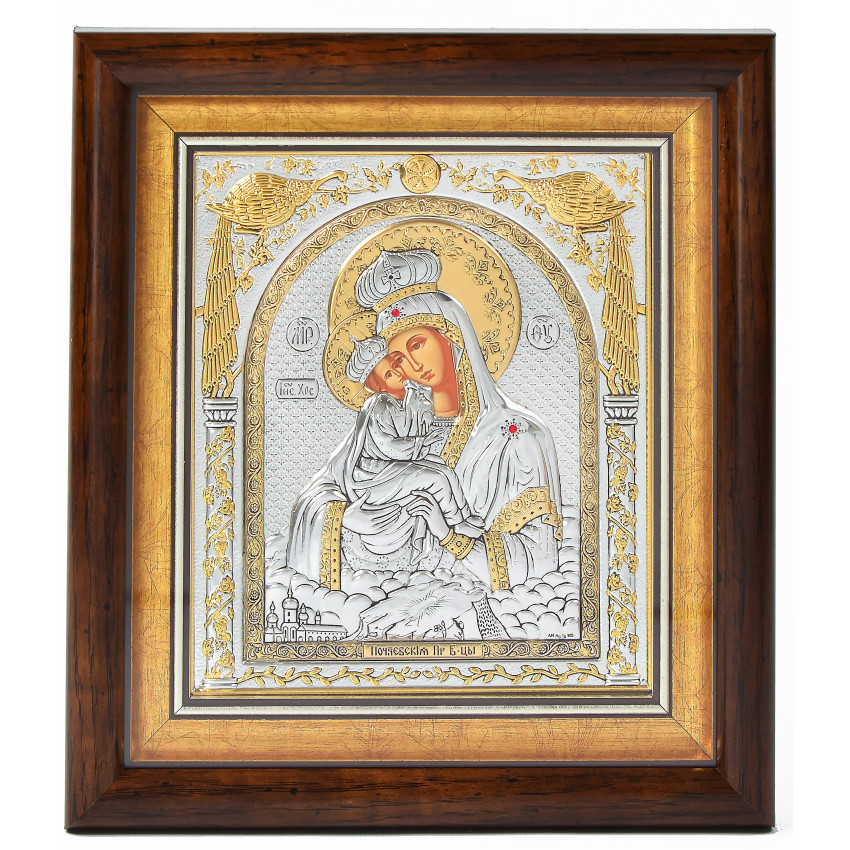 Почаевская Икона Божией Матери 23,3х25,7см под стеклом в прямоугольном киоте EP514-066KZ/P