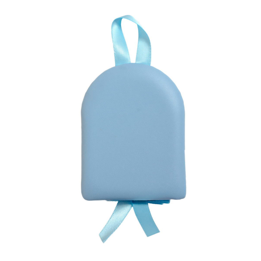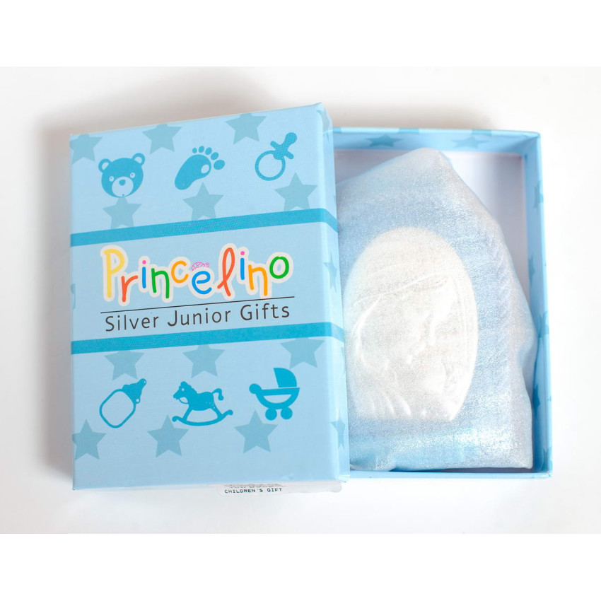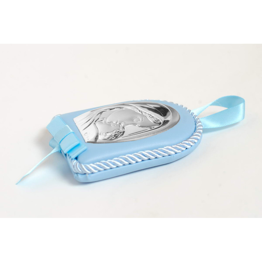 Серебряная детская иконка на синей подушечке (7 х 9см)
