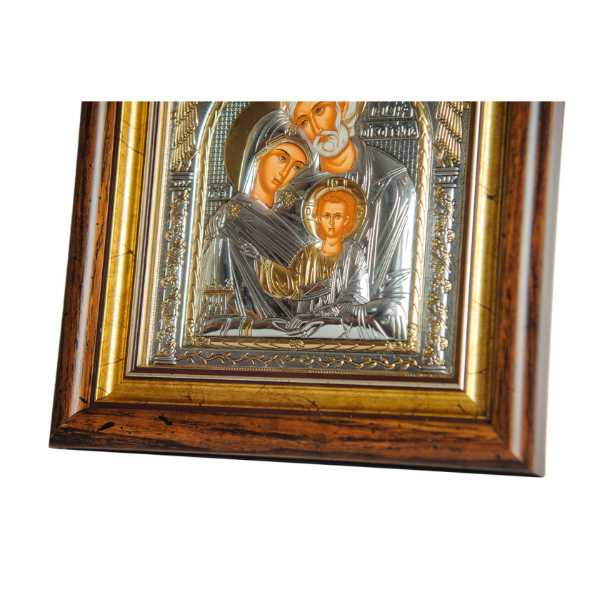 Серебряная Икона "Святое Семейство" прямоугольной формы под стеклом (15,5х17 см)