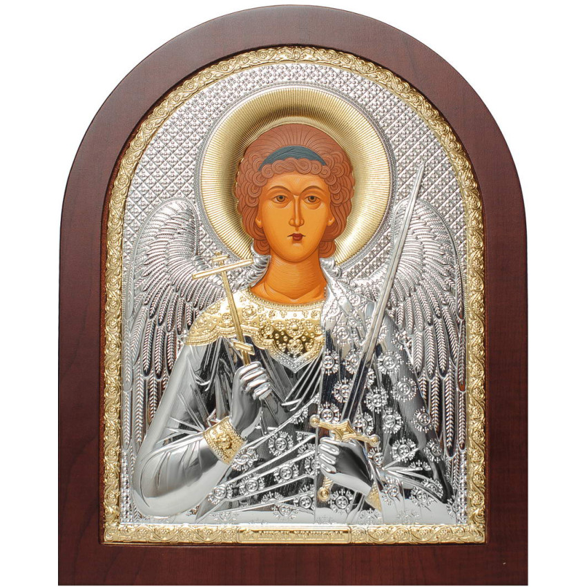Серебряная Икона Святого Ангел Хранитель 10,7х12,8см арочной формы на дереве с рамкой EP3-172XAG/P