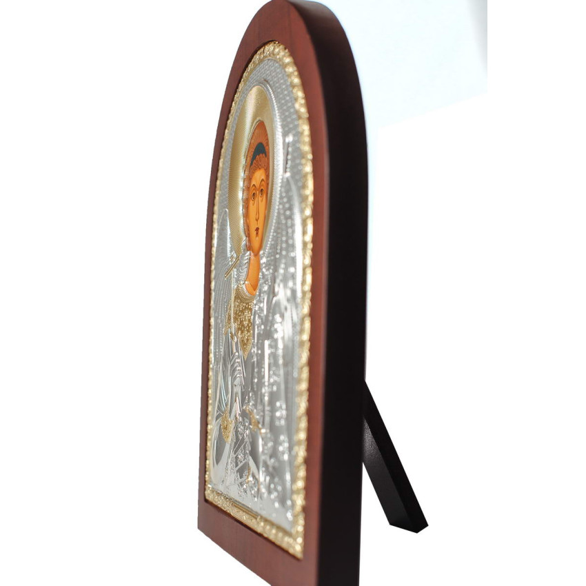 Серебряная Икона Святой Ангел Хранитель арочной формы на дереве