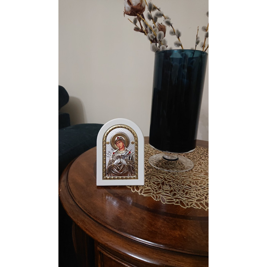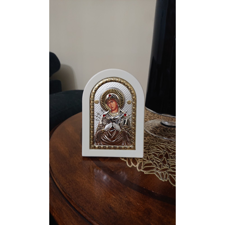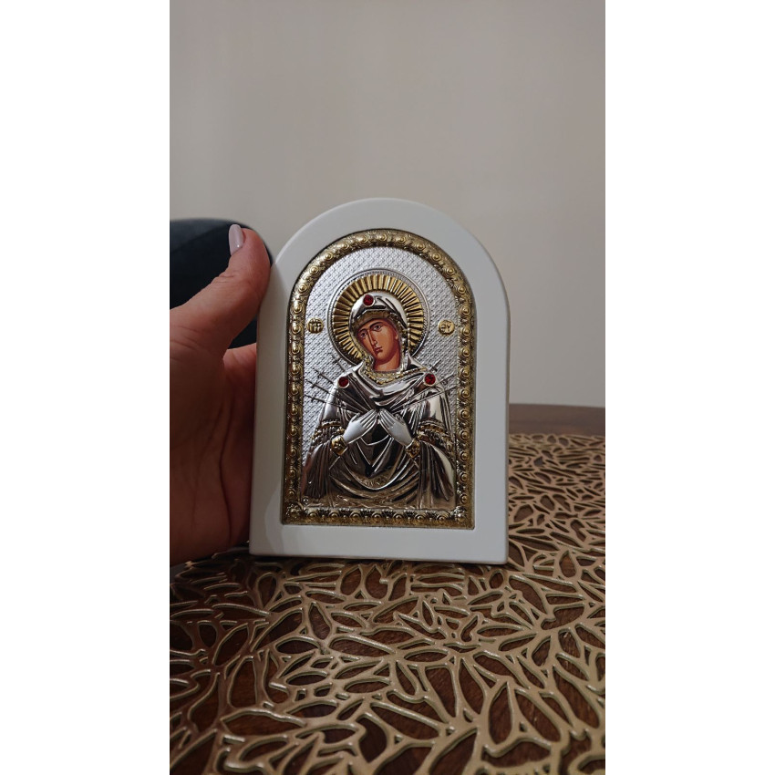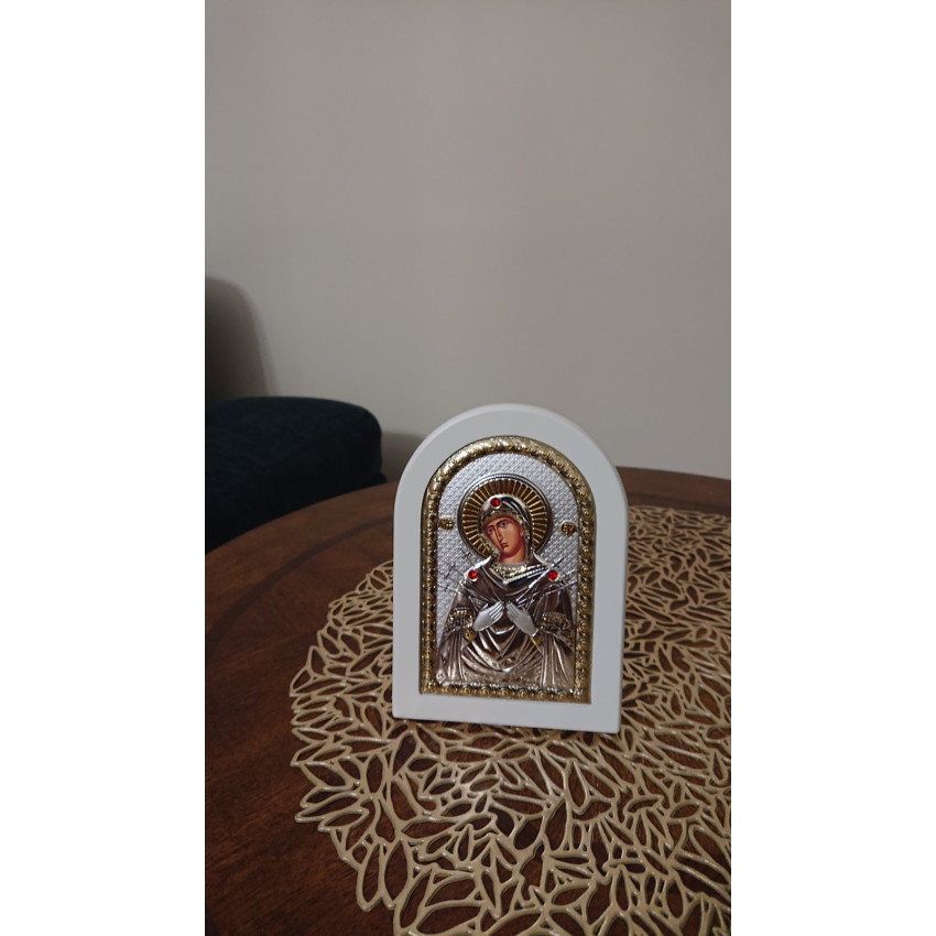 Ікона Божої Матері Семистрільної 10х14см на білому дереві