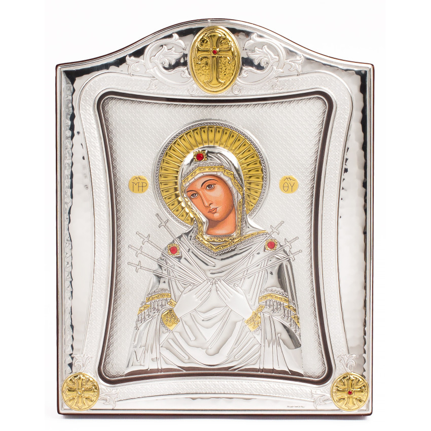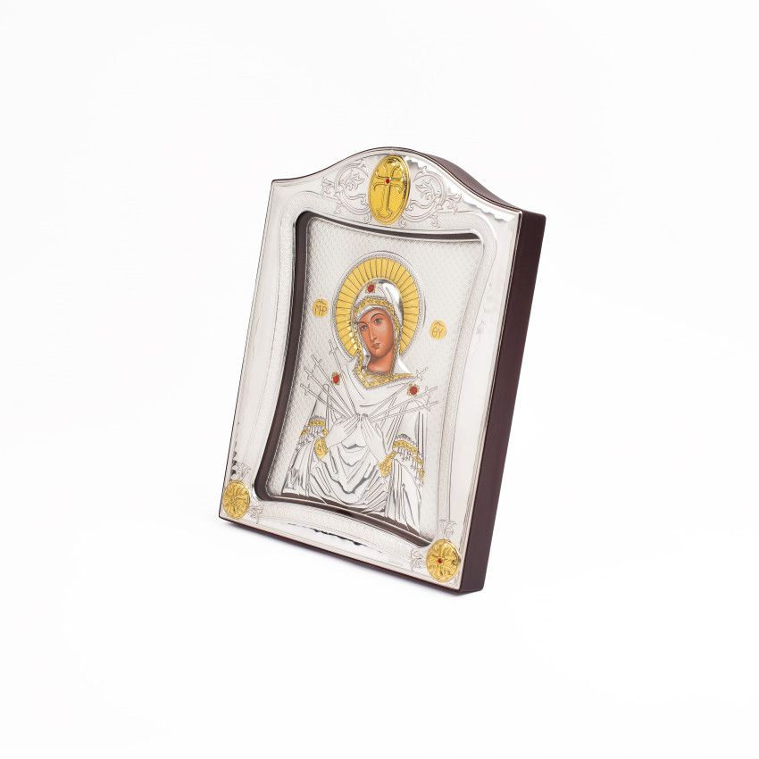 Семистрільна Ікона Божої Матері 20x25см під склом в срібні рамці MA/E3414/1X-K