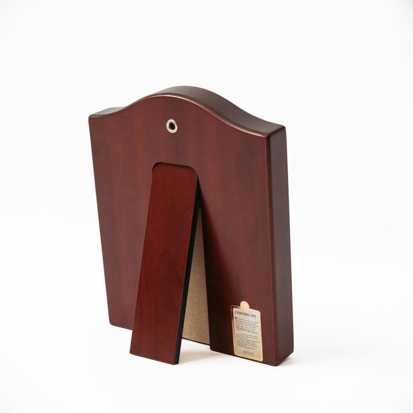 Закріплений оклад на дерев'яному кіоті (основі) прямокутної форми, яка виготовлена із МДФ покритого шпоном дерева. Ззаду ікони є відкидна ніжна та отвір для кріплення на стіні.