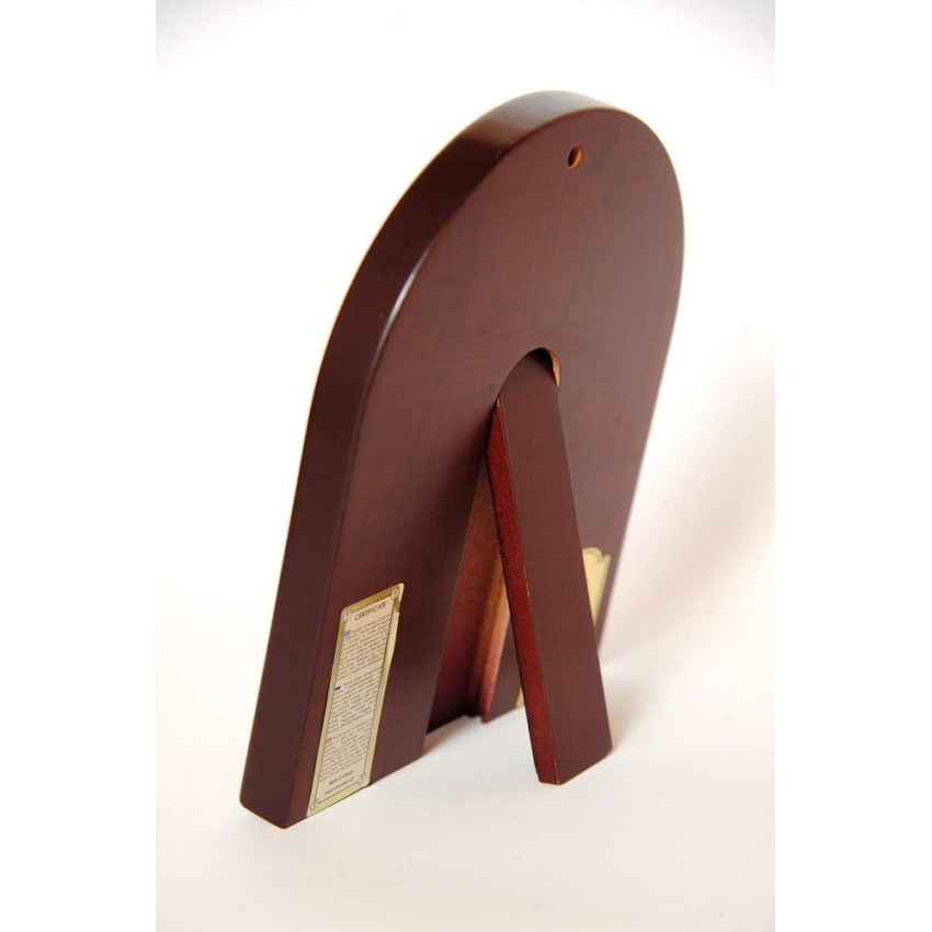 Сзади иконы есть откидная ножка-подставка и отверстие что бы вешать икону на стену. Надежно упакована в оригинальную фирменную коробочку и мешочек, на иконе есть сертификат качества от производителя, подтверждающий что это не подделка.