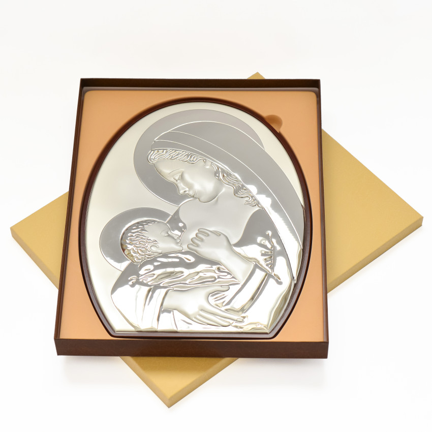 Божа Матір Годувальниця 9,5x12,5см срібна італійська ікона MA/E907/4