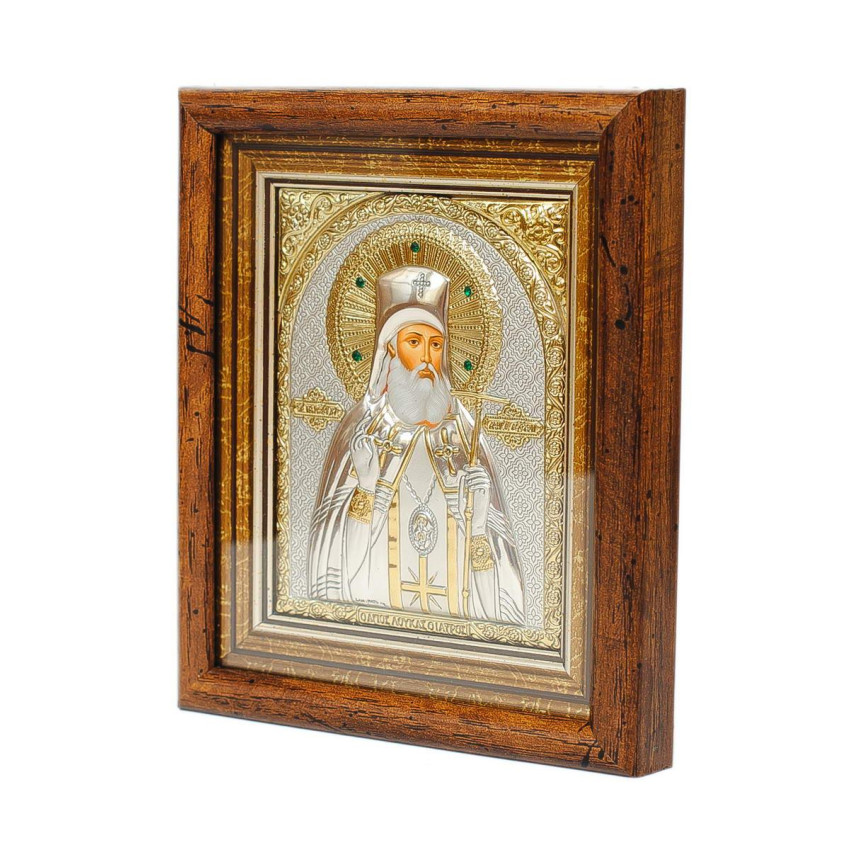 Срібна Ікона Луки Кримського 13х11 см у кіоті під склом, прикрашена камінням