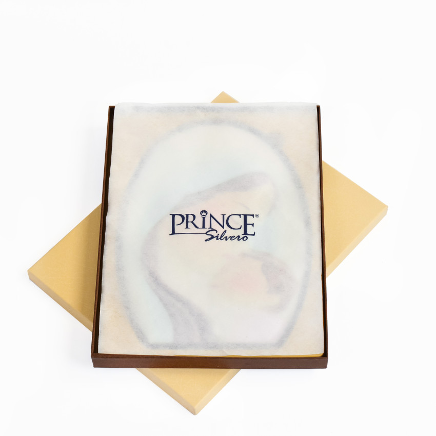 Образ має прямокутну форму без рамки.Оклад виробу виготовлений із комбінованого листа металу miro-silvero – верхня частина якого ламінована сріблом 999°. За допомогою сучасних методів обробки дорогоцінних металів та новаційного устаткування, виробнику вдалося досягнути найвищої якості деталізованого зображення на сріблі - всі елементи орнаменту композиції ікони чітко вирізьблені та яскраво проглядаються до найменших дрібниць. Зовнішній шар дорогоцінного металу ікони покритий спеціальним захисним лаком, що уберігає срібло від потемніння та старіння, захищаючи його від зовнішніх подразників таких як пил та сонячні промені – образ зберігатиме свій первозданний вигляд багато років.Закріплений оклад на дерев'яній основі коричневого кольору. (МДФ покритий шпоном горіха)Ікона має відкидну ніжку-підставку та отвір для зручного вертикального розміщення на стіні. Даний виріб чудо буде підійде до інтер'єру спальної кімнати, кухні, вітальні чи дитячої кімнати.Образ виготовлений в італійському стилі іконографії.Переваги: Багатошаровий матеріал окладу miro-silvero;Захищений від потемніння срібний оклад;Чіткий деталізований рельєфний узор;Європейське виробництво;Упакування:Виріб має оригінальне фірмове упакування від виробника - ікона надійно упакована в якісній картонній коробочці з логотипом компанії та м'який мішечок; дане упаковування гарантує, що виріб надійде Вам цілим та неушкодженим, а також в такому вигляді образу можна представити на подарунок близькій людині.Виробник: Silver Axion;Модельний ряд: Afon Silvero;Країна виробник: Греція;Купуючи в інтернет-магазині Silvericons срібний образ - Ви завжди будете впевненими у придбанні автентичного, якісного та оригінального виробу! Всі грецькі ікони мають Сертифікат Якості від виробника на тильній стороні, який засвідчує, що даний образ виготовлено на фабриці Silver Axion, а також вказує на модельну серію - Afon Silvero. Сертифікат надає Вам безстрокову Гарантію на дану ікону...