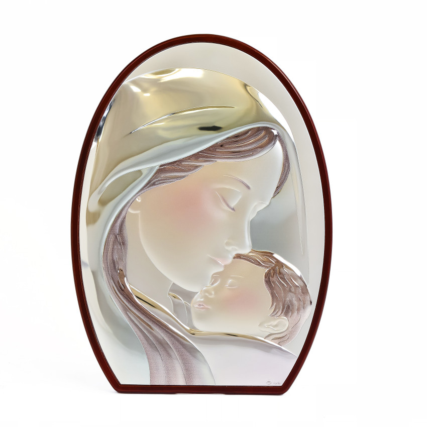 Образ виконаний у хвилястій формі яка нагадує парус вітрил. Оклад виробу виготовлений із комбінованого листа металу miro-silvero – верхня частина якого ламінована сріблом 999°. За допомогою сучасних методів обробки дорогоцінних металів та новаційного устаткування, виробнику вдалося досягнути найвищої якості деталізованого зображення на сріблі - всі елементи орнаменту композиції ікони чітко вирізьблені та яскраво проглядаються до найменших дрібниць. Зовнішній шар дорогоцінного металу ікони покритий спеціальним захисним лаком, що уберігає срібло від потемніння та старіння, захищаючи його від зовнішніх подразників таких як пил та сонячні промені – образ зберігатиме свій первозданний вигляд багато років.Закріплений оклад на дерев'яній основі коричневого кольору. (МДФ покритий шпоном горіха)Ікона має відкидну ніжку-підставку та отвір для зручного вертикального розміщення на стіні. Даний виріб чудо буде підійде до інтер'єру спальної кімнати, кухні, вітальні чи дитячої кімнати.Образ виготовлений в італійському стилі іконографії.Переваги: Багатошаровий матеріал окладу miro-silvero;Захищений від потемніння срібний оклад;Чіткий деталізований рельєфний узор;Європейське виробництво;Упакування:Виріб має оригінальне фірмове упакування від виробника - ікона надійно упакована в якісній картонній коробочці з логотипом компанії та м'який мішечок; дане упаковування гарантує, що виріб надійде Вам цілим та неушкодженим, а також в такому вигляді образу можна представити на подарунок близькій людині.Виробник: Silver Axion;Модельний ряд: Afon Silvero;Країна виробник: Греція;Купуючи в інтернет-магазині Silvericons срібний образ - Ви завжди будете впевненими у придбанні автентичного, якісного та оригінального виробу! Всі грецькі ікони мають Сертифікат Якості від виробника на тильній стороні, який засвідчує, що даний образ виготовлено на фабриці Silver Axion, а також вказує на модельну серію - Afon Silvero. Сертифікат надає Вам безстрокову Гарантію на дану ікону...
