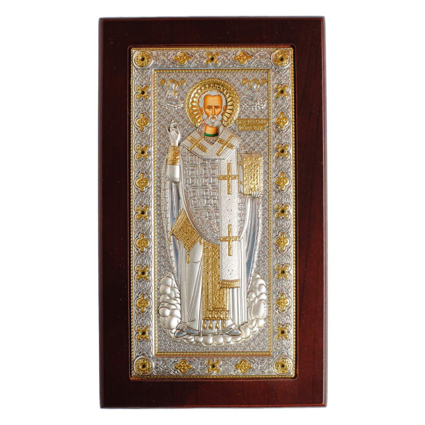 Святой Николай Чудотворец 10,4х17,8 см в полный рост, изготовлена в греции , на иконописной фабрике Silver Axion