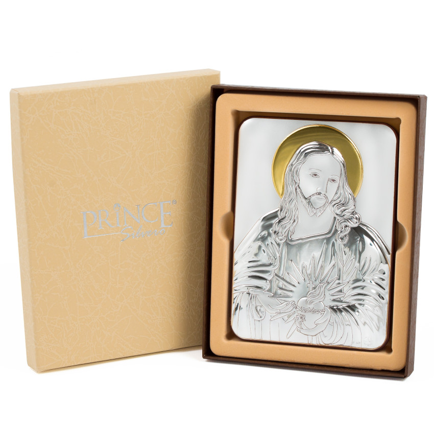 Пресвяте Серце Ісуса 10X14см срібна італійська ікона MB/E982/3X