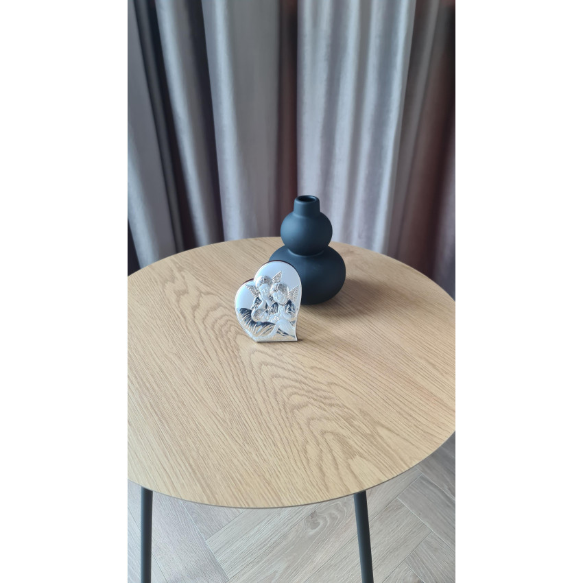 Вишукана срібна ікона у формі серця для Першого Причастя виготовлена з металу зі срібною ламінацією 999 проби, розмір 8,5×10,7 см. Серцеподібна форма виробу є символічним вибором для такої духовної події — вона уособлює любов, відкритість серця та прийняття благодаті. Поверхня має благородний сріблястий блиск.