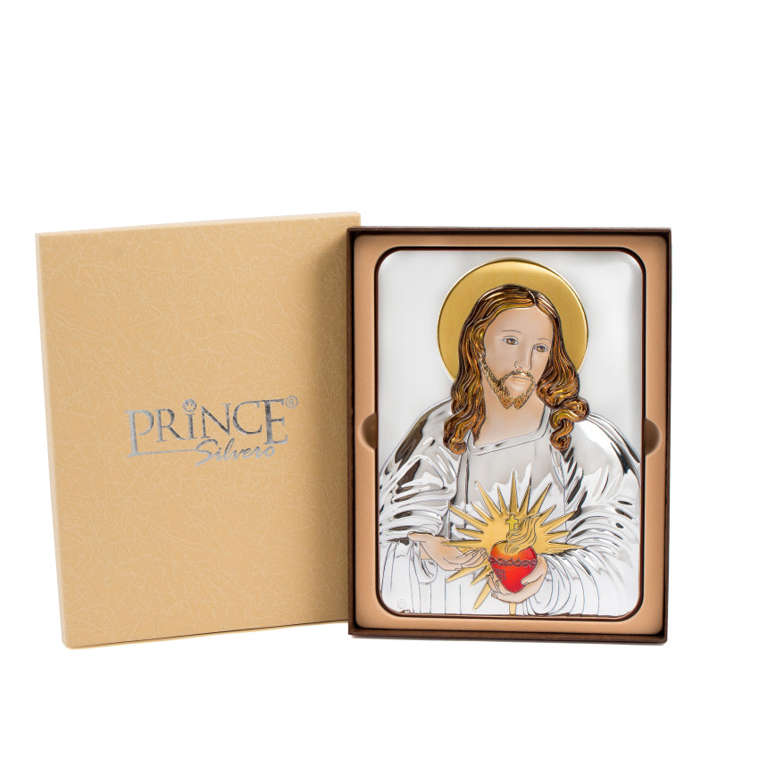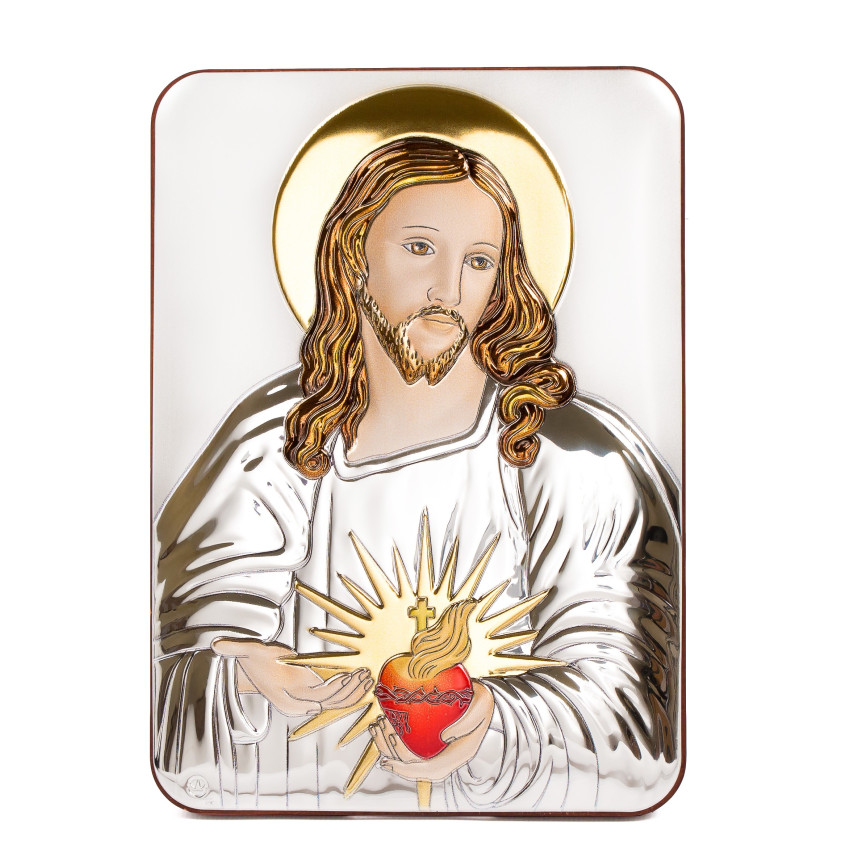 Срібна Ікона Серце Ісуса з емаллю 7х10см
