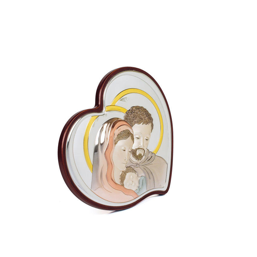 Срібна ікона Свята Сім'я 21,5х29,5см у формі серця з емаллю