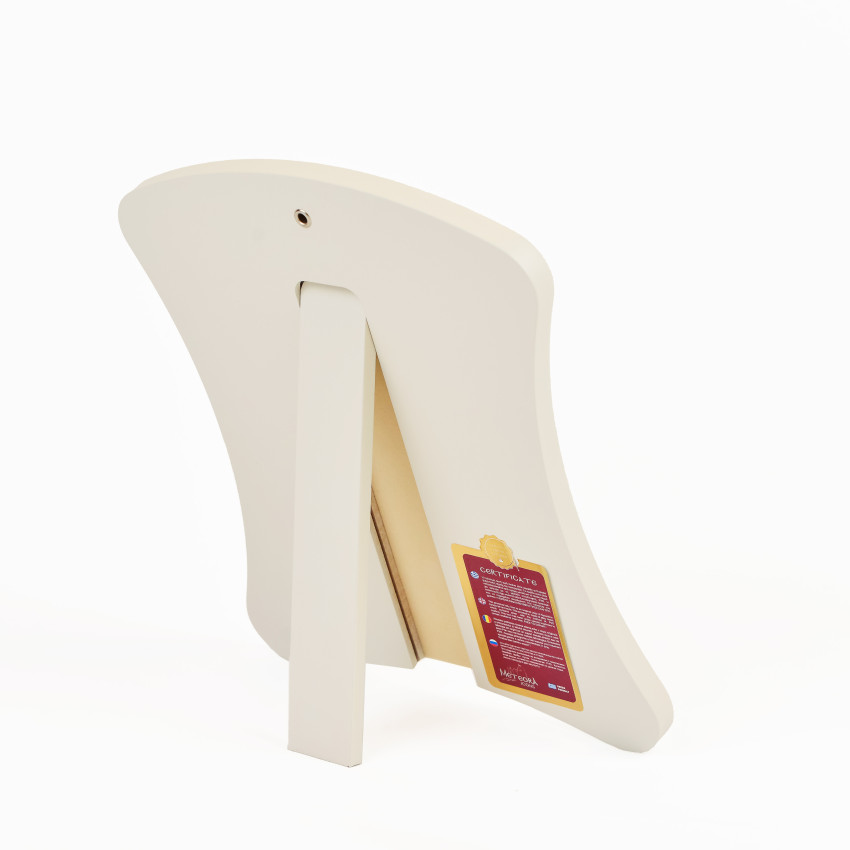С обратной стороны икона имеет отверстие для того, что бы вешать на стену и откидную ножку, в самых малых размерах ножка вставная. На иконе имеется сертификат и фирменная печать производителя. Икона надежно упакована в оригинальную фирменную коробочку и мешочек.