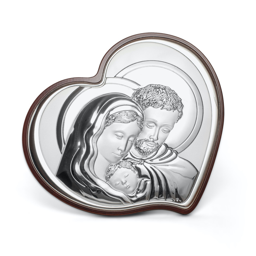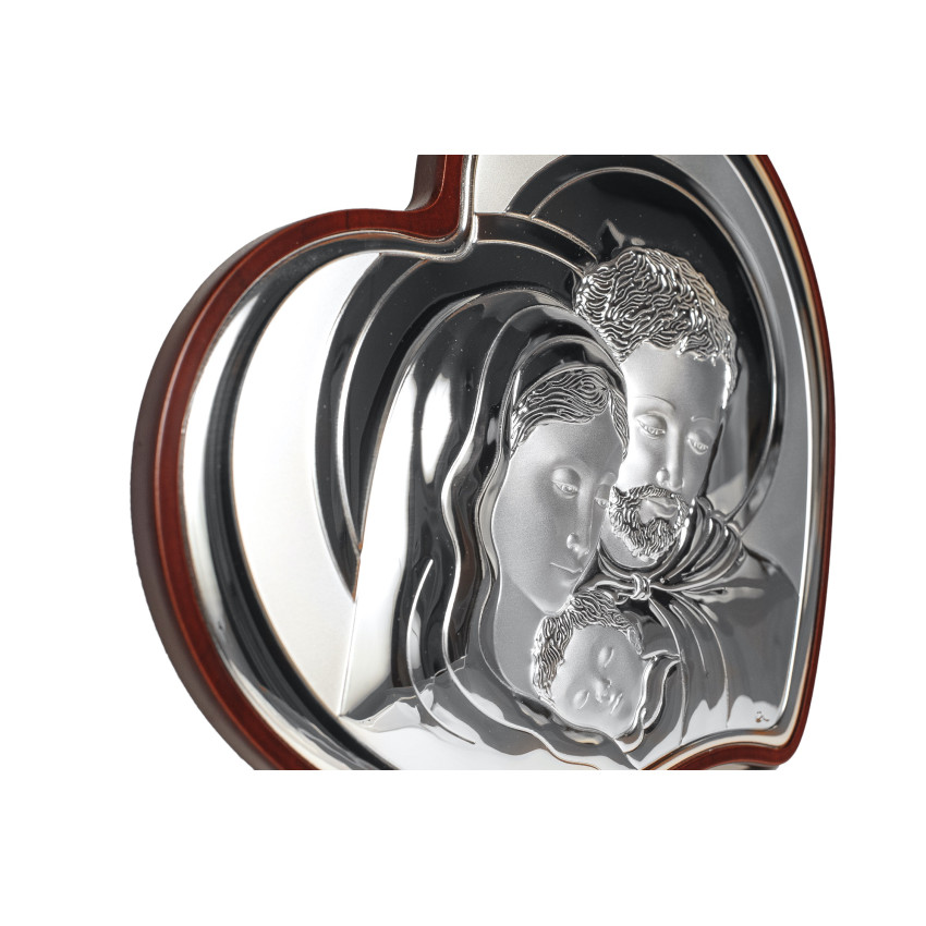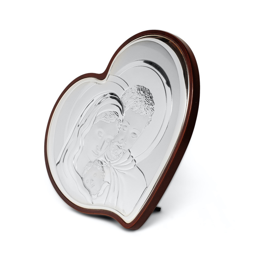 Срібна ікона Святе Сімейство 9,5х12,5 см у формі серця
