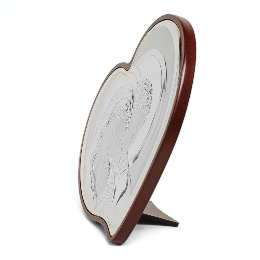 Образ має класичну аркову форму.Оклад виробу виготовлений із комбінованого листа металу miro-silvero – верхня частина якого ламінована сріблом 999°: в окремих місцях композиція вдало прикрашена сусальним золотом, що придає їй більш контрастного вигляду. За допомогою сучасних методів обробки дорогоцінних металів та новаційного устаткування, виробнику вдалося досягнути найвищої якості деталізованого зображення на сріблі - всі елементи орнаменту композиції ікони чітко вирізьблені та яскраво проглядаються до найменших дрібниць. Обличчя Святих – відкрите та прописане методом шовкографії на лляному полотні натуральними фарбами «темпера». Зовнішній шар дорогоцінного металу ікони покритий спеціальним захисним лаком, що уберігає срібло від потемніння та старіння, захищаючи його від зовнішніх подразників таких як пил та сонячні промені – образ зберігатиме свій первозданний вигляд багато років.Закріплений оклад на дерев'яній основі коричневого кольору. (МДФ покритий шпоном горіха)Ікона має відкидну ніжку-підставку та отвір для зручного вертикального розміщення на стіні. Даний виріб чудо буде підійде до інтер'єру спальної кімнати, кухні, вітальні чи дитячої кімнати.Образ виготовлений в грецькому стилі іконографії з дотриманням всіх канонів давньовізантійського іконопису.Переваги: Багатошаровий матеріал окладу miro-silvero;Захищений від потемніння срібний оклад;Гармонійне поєднання срібла з золотом;Чіткий деталізований рельєфний узор;Європейське виробництво;Упакування:Виріб має оригінальне фірмове упакування від виробника - ікона надійно упакована в якісній картонній коробочці з логотипом компанії та м'який мішечок; дане упаковування гарантує, що виріб надійде Вам цілим та неушкодженим, а також в такому вигляді образу можна представити на подарунок близькій людині.Виробник: Silver Axion;Модельний ряд: Afon Silvero;Країна виробник: Греція;Купуючи в інтернет-магазині Silvericons срібний образ - Ви завжди будете впевненими у придбанні автентичного, якісного та оригінального виробу! Всі грецькі ікони мають Сертифікат Якості від виробника на тильній стороні, який засвідчує, що даний образ виготовлено на фабриці Silver Axion, а також вказує на модельну серію - Afon Silvero. Сертифікат надає Вам безстрокову Гарантію на дану ікону...
