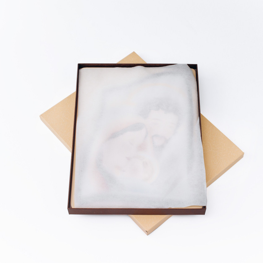 Икона надежно упакована в фирменную коробочку и мешочек.