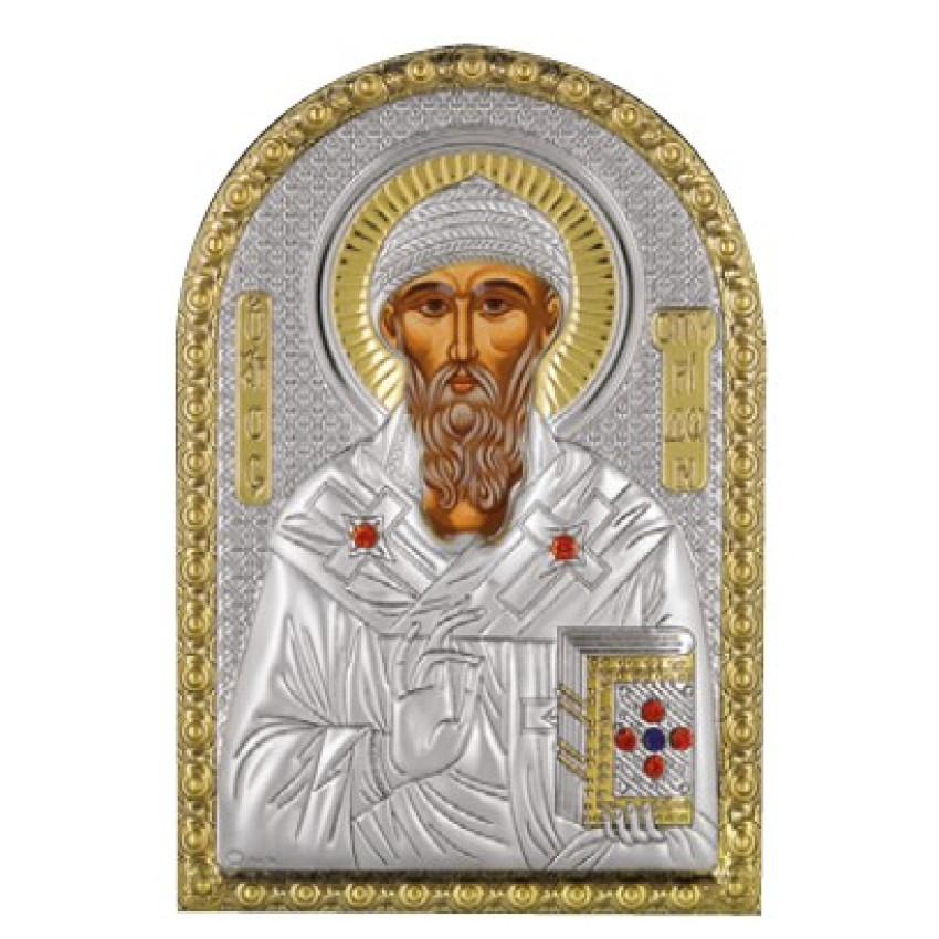 Срібна Ікона Святий Спиридон 10х14см аркової форми на пластиковій основі