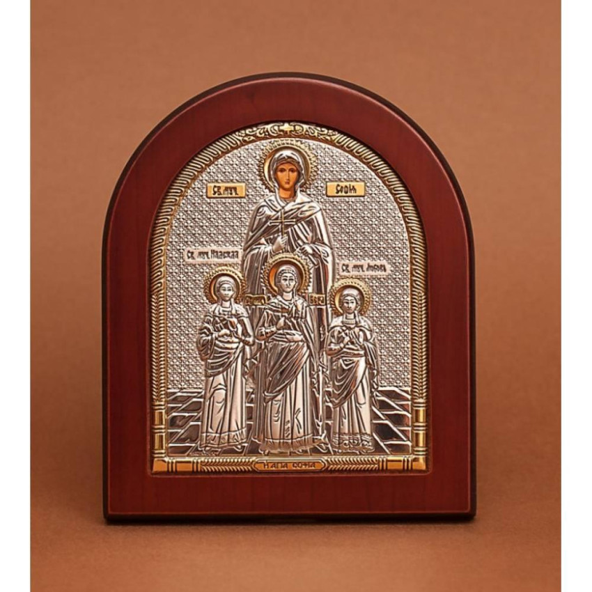 Серебряная Икона Вера,Надежда,Любовь и их мать Св.София 11х13см