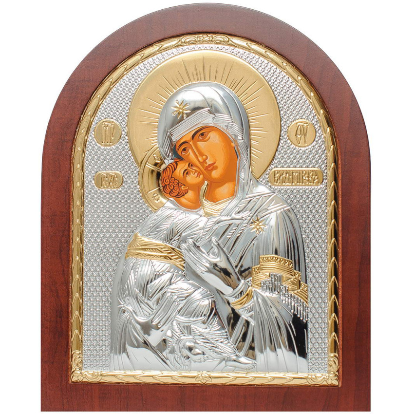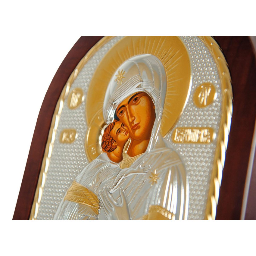 Срібна Ікона Вишгородської (Володимирської) Божої Матері 20х25см арочної форми на дереві з рамкою EP5-007XAG/P