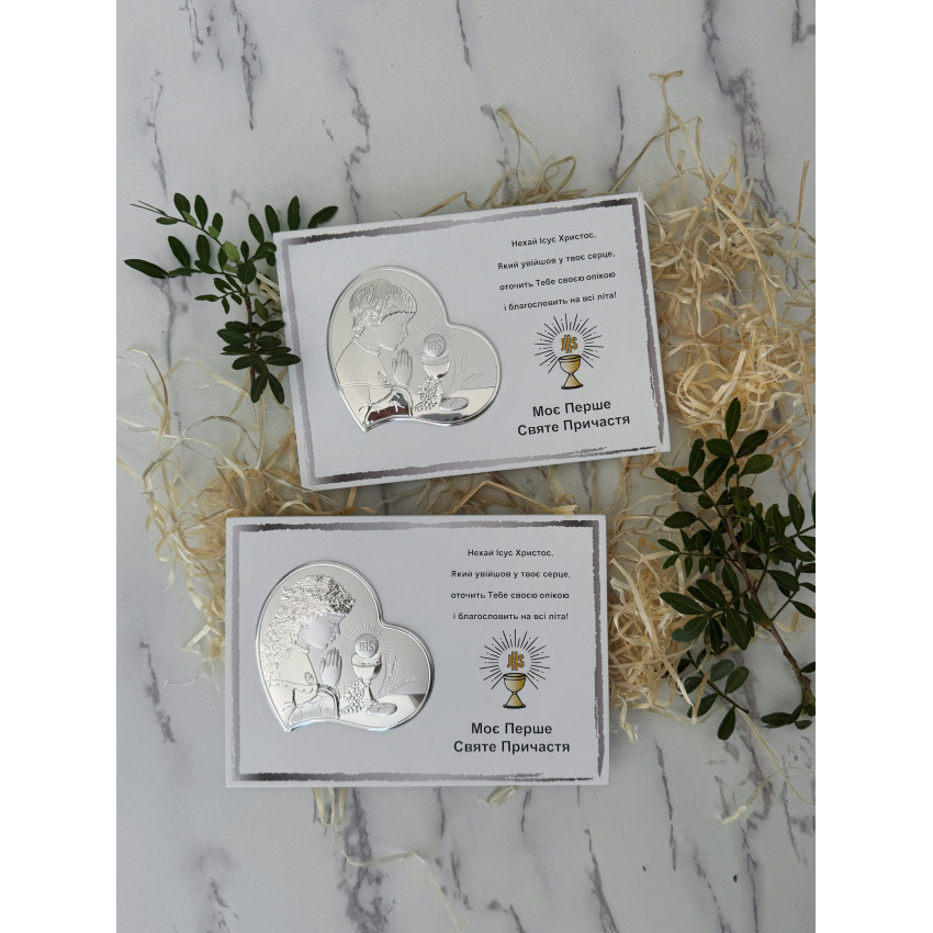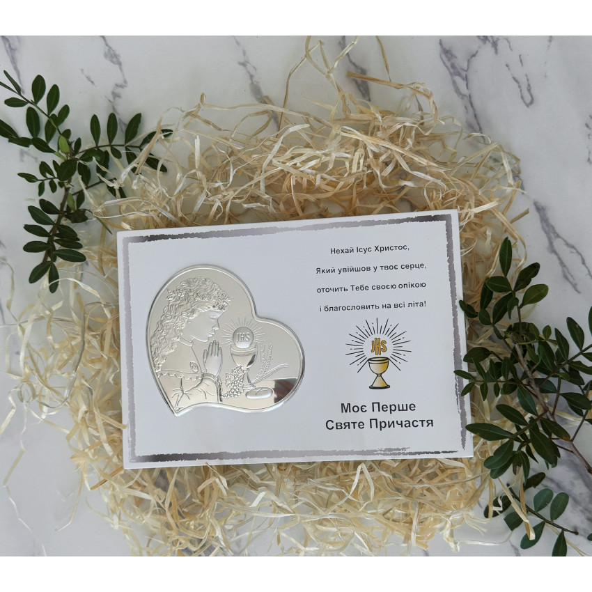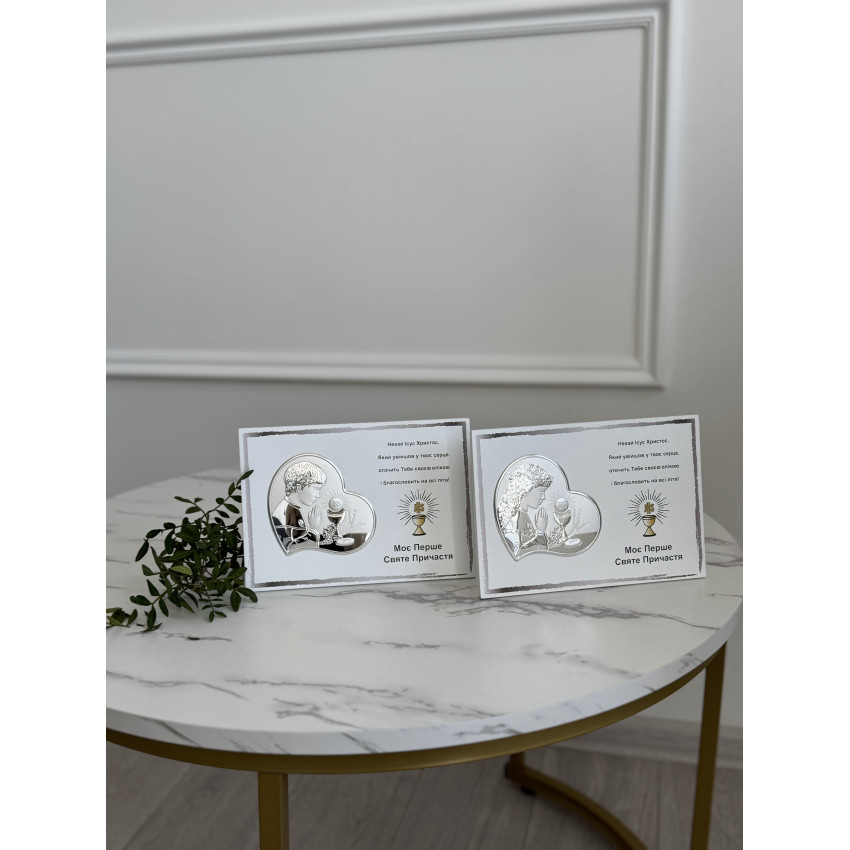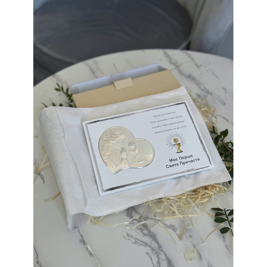 Комбінація іконки та молитви-благословення робить цей виріб більшим, ніж звичайний сувенір — це духовний заповіт від близьких. Що подарувати дівчинці на перше причастя — пам'ятки такого формату є найбільш повноцінним і змістовним вибором. Виріб займе постійне місце в кімнаті дитини та супроводжуватиме її на духовному шляху.